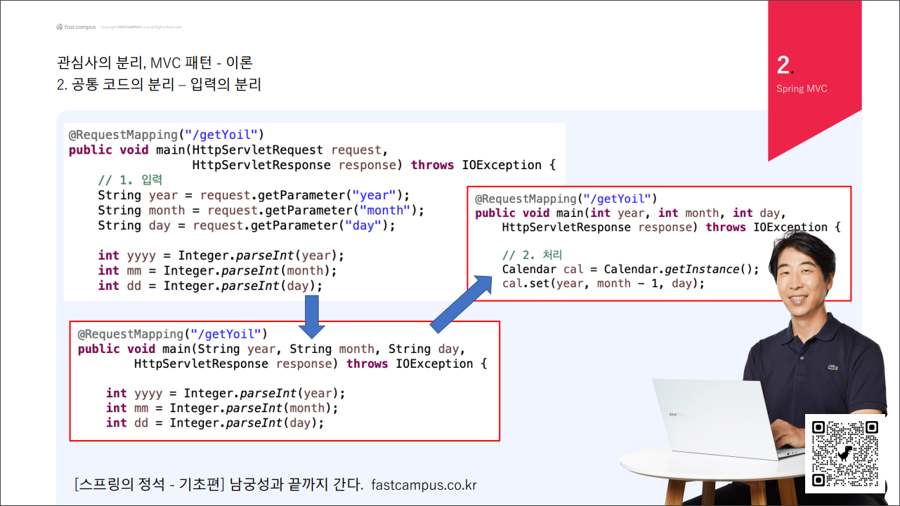 스프링에서 입력하는 부분은 request.getParameter()으로 처리되는데 공동 코드이니