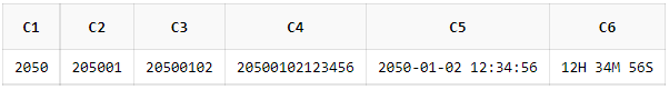 , TO_DATE('20050102123456', 'YYYYMMDDHH24MISS') AS c4