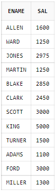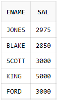 | 3 | SELECT ename, sal FROM emp WHERE (sal < 2500 OR sal > 3000); |