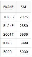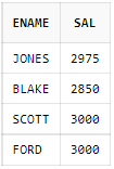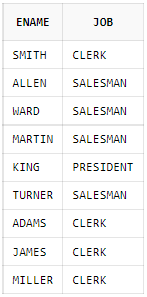 | 3 | SELECT ename, sal FROM emp WHERE (job <> 'ANALYST' AND job <> 'MANAGER'); |