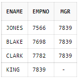 SELECT ename, empno, mgr FROM emp WHERE (empno = 7839 OR mgr = 7839)