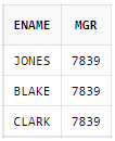 SELECT ename, empno, mgr FROM emp WHERE 7839 IN (empno, mgr);