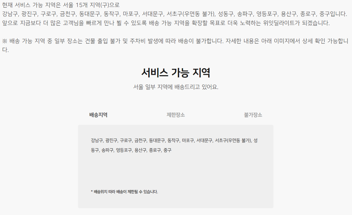 위잇딜라이트를 이용 가능한 지역이 한정되어 있으니 구독 전 꼭 참고하시길 바랍니다.