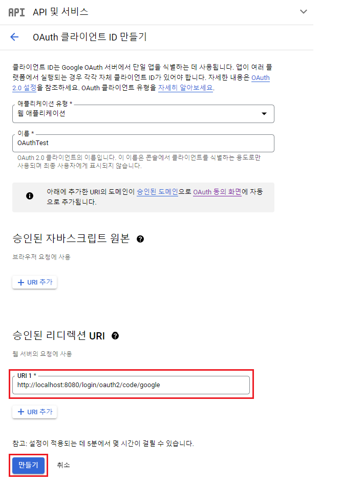 10. 승인된 리디렉션 URI에는 authorization code를 받을