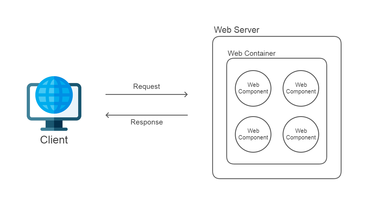 웹 프로그램(Component)은 항상 Server의 내부 Container안에 존재하여야 합니다.
