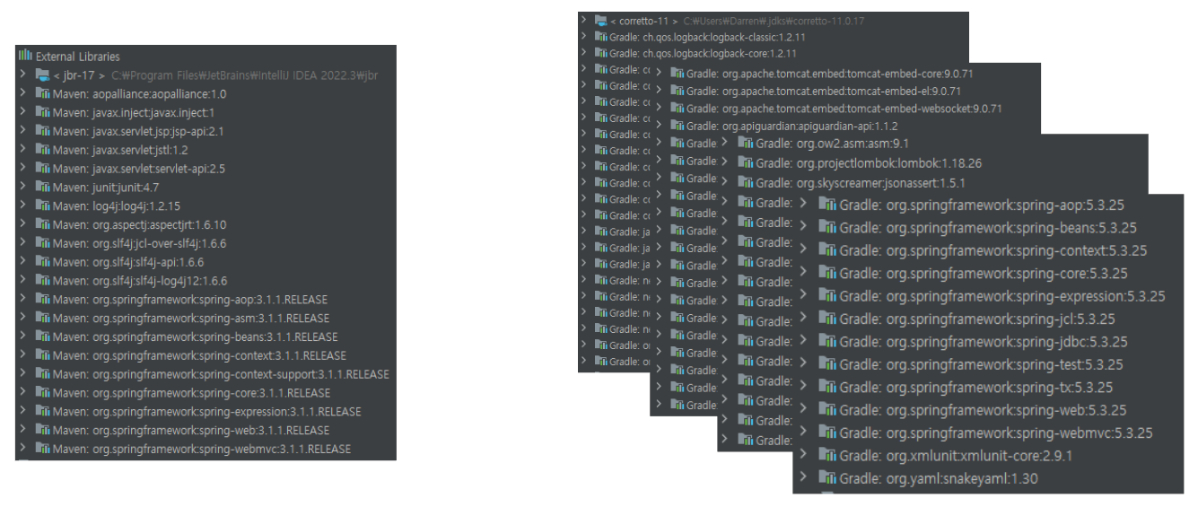 원하는 라이브러리를 선택하고 버전 호환성을 확인해야 하는 과정이 불가피했습니다.