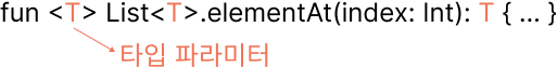 fun <T> List<T>.elementAt(index: Int): T { ... }