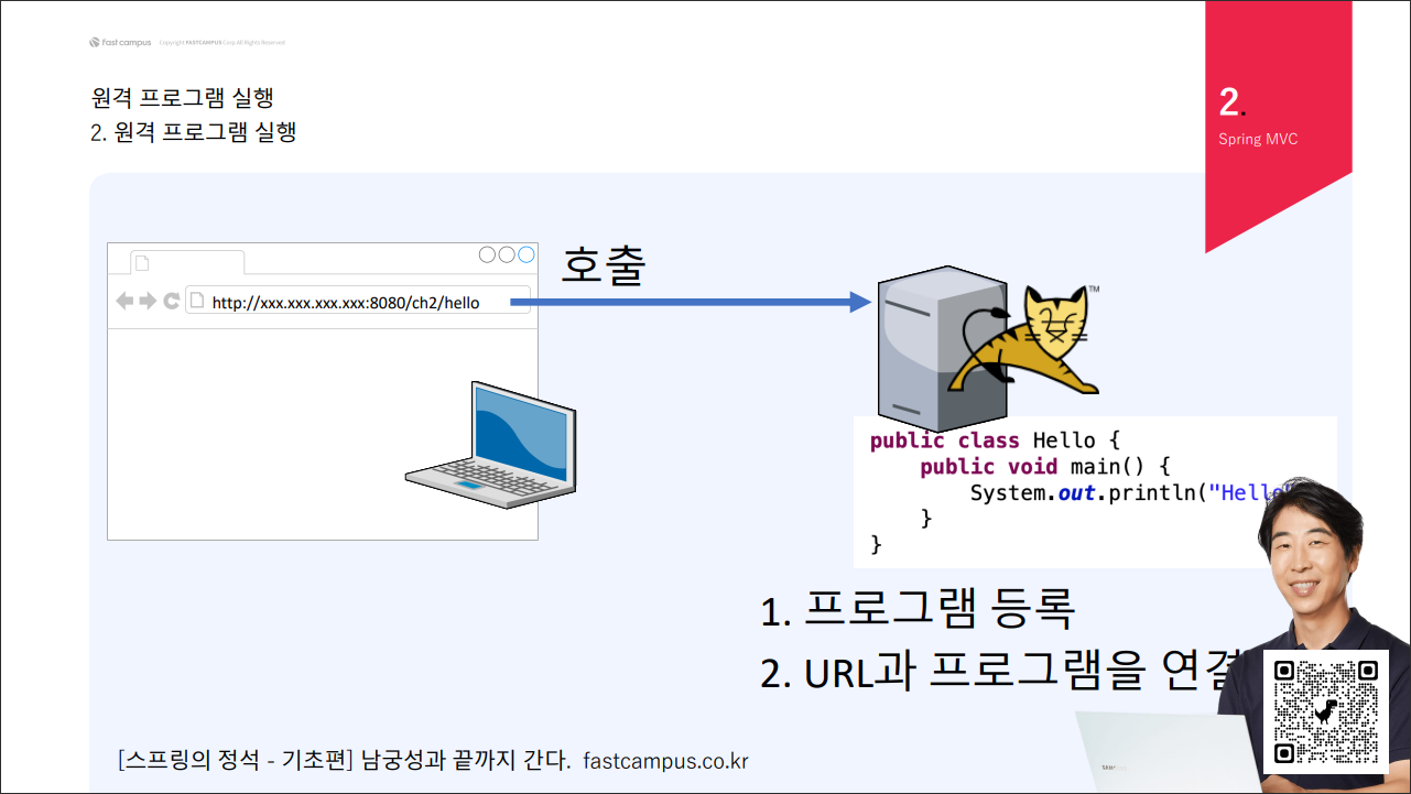 해 URL로 요청을 보내고, 톰캣에서 원격으로 프로그램(메서드)을 실행시키게 된다.